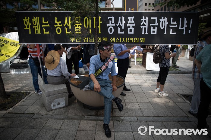 (서울=포커스뉴스) 29일 오후 서울 영등포구 국회의사당 인근에서 전국화훼협회 등 27개 단체원들이 김영란법 반대를 외치며 집회에 참가하고 있다.