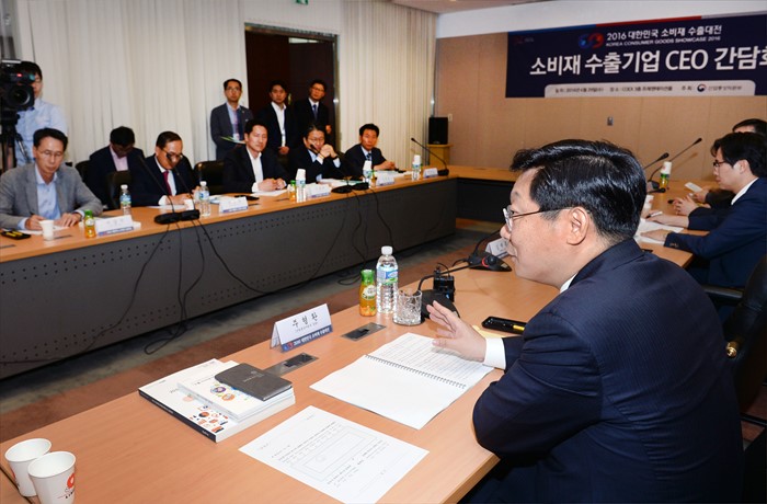 (서울=포커스뉴스) 주형환 산업통상자원부 장관이 29일 서울 강남구 삼성동 코엑스에서 열린 소비재 수출기업 CEO 간담회에서 인사말을 하고 있다. 이날 간담회에는 최수규 중소기업청 차장, 김재홍 KOTRA 사장, 김정관 무역협회 부회장, 김형호 대중소기업협력재단 사무총장, 유충식 농수산식품유통공사 이사, 이용승 중소기업진흥공단 이사, 이대희 쿠첸 대표, 강태선 블랙야크 호장, 유근직 잇츠스킨 대표, 이종욱 대웅제약 부회장, 이상신 오케이에프 회장,최삼규 한국인삼공사 이사, 이갑수 이마트 대표, 윤문현 길림양행 대표, 안제현 삼화네트웍스 대표, 최태웅 경성오토비스 대표가 참석했다. <사진제공=산업통상자원부>