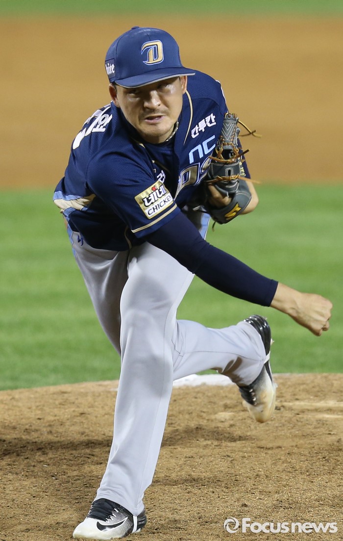 (서울=포커스뉴스) 29일 서울 잠실구장에서 열린 2016 프로야구 NC-두산 경기에서 NC 투수 원종현이 8회말에 등판해 투구하고 있다.