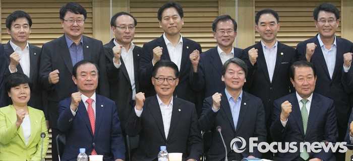 (서울=포커스뉴스) 30일 오전 서울 여의도 국회 의원회관에서 국민의당 22차 집중역량강화 워크숍을 마친 박지원 비대위원장, 안철수 전 대표 등 의원들이 기념촬영을 하고 있다.