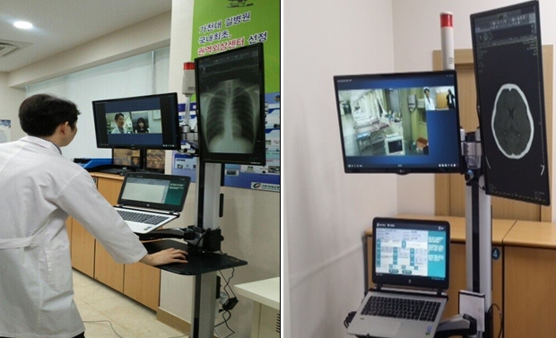농어촌에서 응급환자가 응급실에 내원하면 의사는 권역응급의료센터 전문의를 원격으로 호출하고, CT 등 영상, 음성, 진료기록의 실시간 공유를 통해 권역응급의료센터 전문의의 자문을 받아 응급환자를 진료하게 된다.