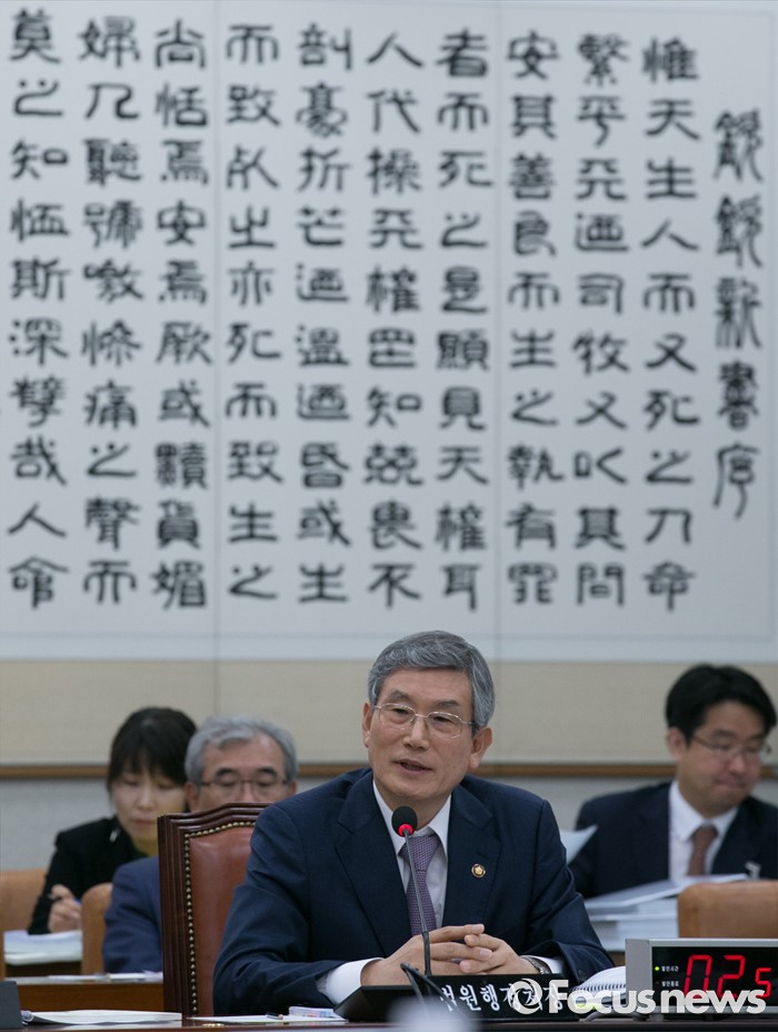 (서울=포커스뉴스) 30일 오전 서울 여의도 국회에서 열린 법제사법위원회 전체회의에 참석한 고영한 법원행정처장이 의원들의 질의에 답하고 있다.