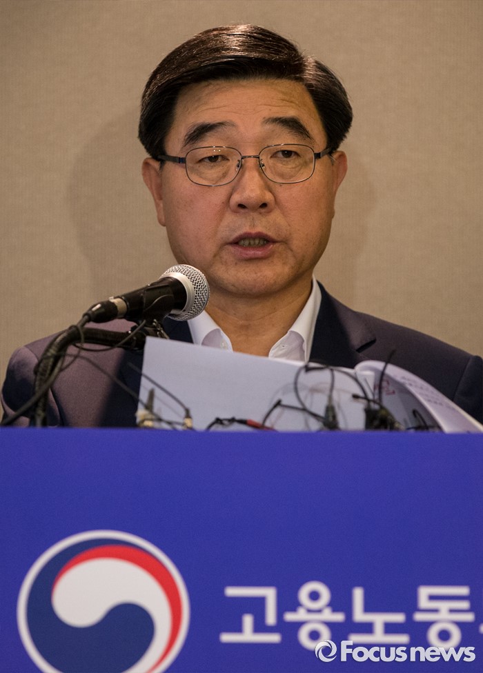 (서울=포커스뉴스) 30일 오전 서울 중구 프레스센터에서 이기권 고용노동부 장관이 조선업 특별고용지원업종 지정안 심의결과를 발표하고 있다.
