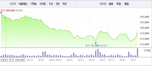 같은 시각 삼성전자도 전일 대비 2.15%(3만원) 오른 142만6000원에 거래되고 있다. 삼성전자 경우 곧 발표될 2분기 잠정 실적이 매우 좋다는 소식이 도는 가운데 상승세를 타고 있다.