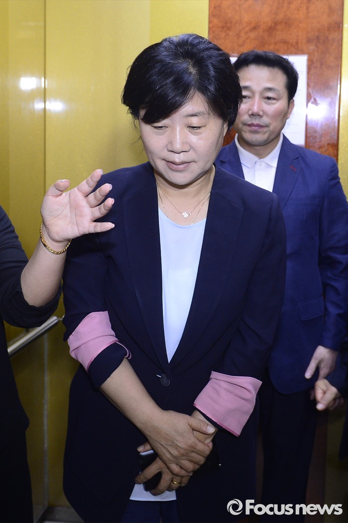 (서울=포커스뉴스) 가족채용 논란에 휩싸인 서영교 더불어민주당 의원이 30일 오전 당무감사원 회의에서 논란을 소명하기위해 서울 여의도 더민주 당사로 들어가고 있다.