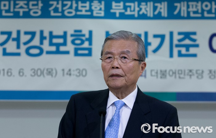 (서울=포커스뉴스) 30일 오후 서울 여의도 국회 의원회관에서 열린 더불어민주당 건강보험 부과체계 개편안 공청회에 참석한 김종인 비대위 대표가 축사를 하고 있다.