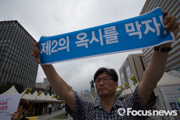 (서울=포커스뉴스) 30일 오후 서울 종로구 광화문광장에서 가습기살균제참사전국네트워크 회원들이 '제2의 옥시'를 막기 위한 서명운동 캠페인을 벌이고 있다.