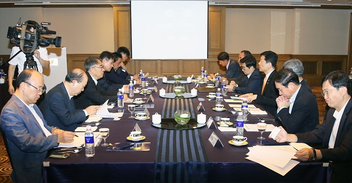 (서울=포커스뉴스) 우태희 산업통상자원부 차관이 30일 서울 리츠칼튼호텔 금강홀에서 열린 에너지신산업 3대 모델 업계 간담회에 참석해 간담회를 주재하고 있다. 이날 간담회에는 김희집, 부경진, 문승일 서울대 교수, 박주헌 에너지경제연구원장, 황진택 에너지기술평가원장, 김형진 녹색에너지연구원장, 황우현 한국전력공사 단장, 김지섭 LG CNS 상무, 이승상 KCC 이사, 조호규 현대건설 상무, 김인택 에너지공단 이사 등 산학연 전문가가 참석했다. <사진제공=산업통상자원부>