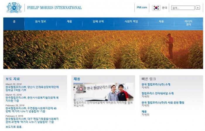 (서울=포커스뉴스) 필립모리스코리아가 홈페이지를 갑자기 폐쇄한다는 결정을 내렸다. 글로벌 본사 사이트 속으로 들어가게 된 것. 필립모리스코리아는 '말보로'로 유명한 미국계 담배 제조사 필립모리스의 한국법인이다.