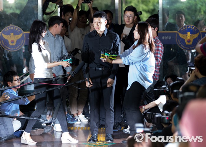(서울=포커스뉴스) 성폭행 혐의로 4명의 여성에게 연이어 피소된 가수 겸 배우 박유천이 30일 오후 서울 강남경찰서로 출석하고 있다.