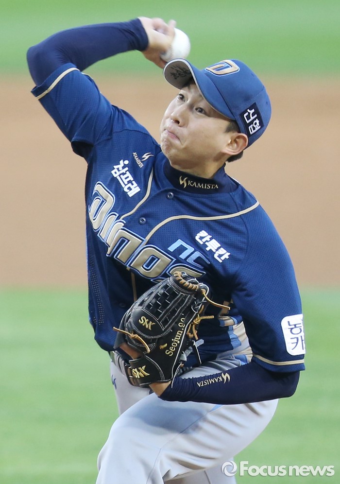 (서울=포커스뉴스) 30일 서울 잠실구장에서 열린 2016 프로야구 NC-두산 경기에서 1회말 NC 선발투수 임서준이 투구하고 있다.