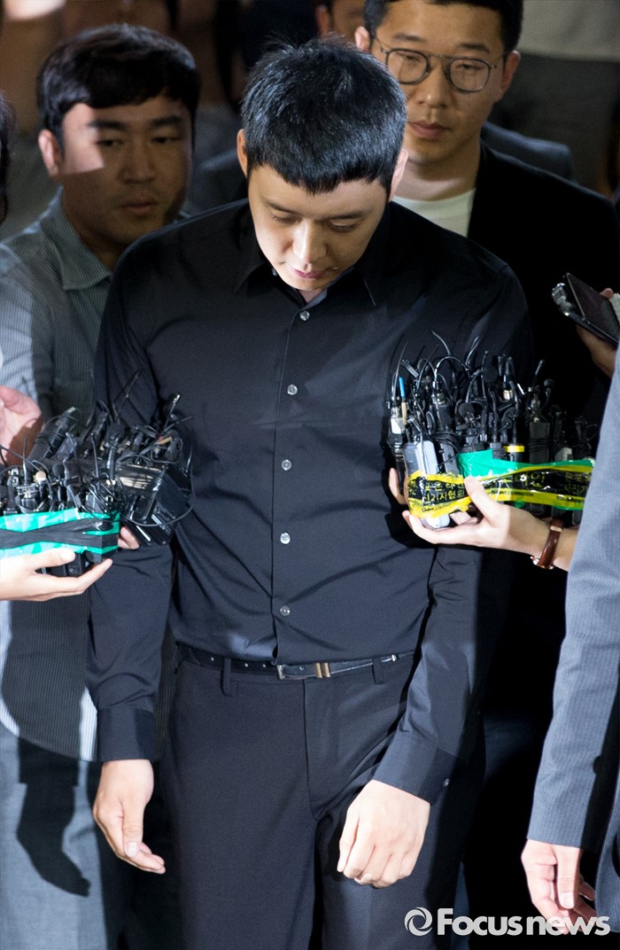 (서울=포커스뉴스) 성폭행 혐의로 4명의 여성에게 연이어 피소된 가수 겸 배우 박유천이 30일 오후 서울 강남경찰서로 출석하고 있다.