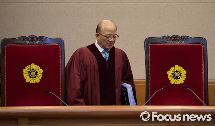 이후 홍 지사가 무상급식 보조금 지원 중단까지 선언하자 경남교육청은 2014년 11월 헌재에 권한쟁의심판을 청구했다. "학교급식과 관련한 사무는 헌법과 지방교육자치에 관한 법률, 학교급식법 등으로 부여된 교육청 소관이며, 감사계획 통보는 이러한 권한을 침해한 것"이라는 이유에서다.(서울=포커스뉴스) 박한철 헌법재판소장. 2016.06.30 오장환 기자