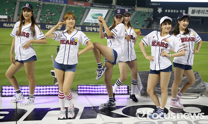 (서울=포커스뉴스) 30일 서울 잠실구장에서 열린 2016 프로야구 NC-두산 경기에서 인기 걸그룹 '라붐'이 경기전 시구에 이어 클리닝타임에 응원단상에 올라 귀엽고 깜찍한 율동으로 관중들에게 한 여름의 더위를 식혀주는 깜짝 공연을 펼쳤다.