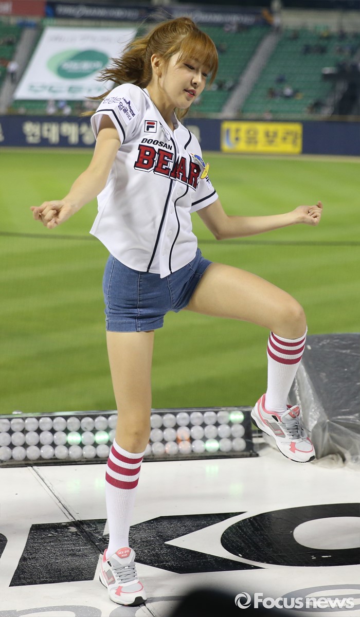 (서울=포커스뉴스) 30일 서울 잠실구장에서 열린 2016 프로야구 NC-두산 경기에서 인기 걸그룹 '라붐'이 경기전 시구에 이어 클리닝타임에 응원단상에 올라 귀엽고 깜찍한 율동으로 관중들에게 한 여름의 더위를 식혀주는 깜짝 공연을 펼쳤다.