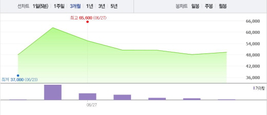 녹십자랩셀은 상장 첫날과 이튿날인 6월23일과 24일 상승폭을 기록하며 기분 좋은 출발을 했다. 그렇지만 같은달 27일부터 30일까지 1~11%의 낙폭을 기록했다.