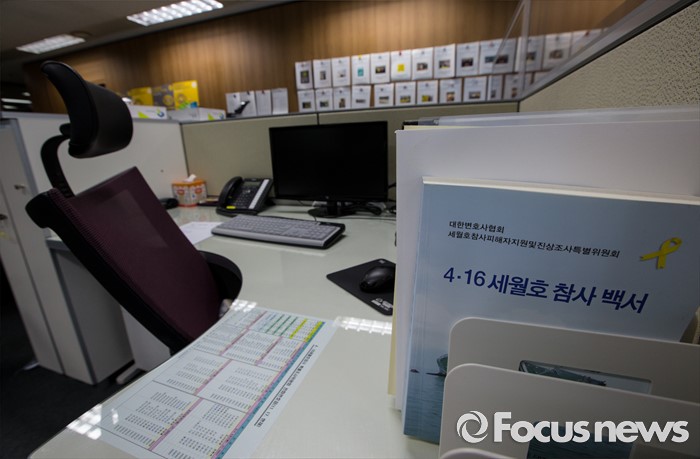 (서울=포커스뉴스) 4.16세월호참사 특별조사위원회의 법정 조사활동이 끝난 1일 오전 서울 중구 특조위 사무실의 책상 곳곳이 파견 직원들의 근무 종료로 텅 비어 있다.