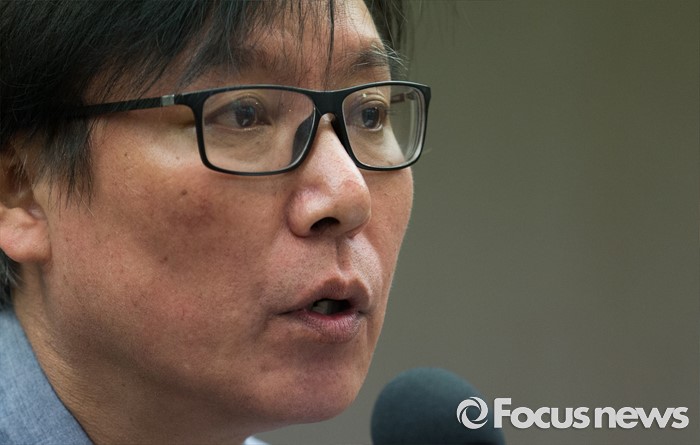 (서울=포커스뉴스) 이동열 투씨엠 대표가 1일 오전 서울 중구 프레스센터에서 열린 제2롯데월드 입면 표절의혹 기자회견에 참석해 발언하고 있다. 이 대표는 자사 디자인 '스타 컬렉션'을 45도 회전하면 제2롯데월드 에비뉴엘관의 디자인과 일치한다고 주장했다.