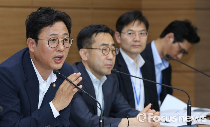 (세종=포커스뉴스) 이정섭 환경부 차관이 1일 오전 세종시 정부세종청사 6동 브리핑룸에서 미세먼지 관리 특별대책 세부이행계획을 발표하고 있다. 정부는 브리핑에서 2020년까지 친환경차 보급에 3조원, 충전인프라에 7600억원, 노후경유차 조기폐차에 1800억원을 투자하고 금년 7월중 에너지상대가격 조정 연구 착구, 석탄화력발전도 미세먼지 저감대책 발표, 노후경유차 수도권 운행제한 시행 방안 확정 등 핵심대책의 구체와 및 일정단축 등을 주요내용으로 발표했다. 왼쪽부터 이정섭 차관, 박광열 해양수산부 해사안전국장, 나정균 환경부 기후대기정책관, 김진우 미래창조과학부 원천기술과장.
