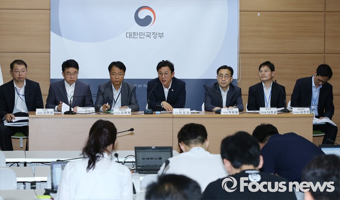 (세종=포커스뉴스) 이정섭 환경부 차관이 1일 오전 세종시 정부세종청사 6동 브리핑룸에서 미세먼지 관리 특별대책 세부이행계획을 발표하고 있다. 정부는 브리핑에서 2020년까지 친환경차 보급에 3조원, 충전인프라에 7600억원, 노후경유차 조기폐차에 1800억원을 투자하고 금년 7월중 에너지상대가격 조정 연구 착구, 석탄화력발전도 미세먼지 저감대책 발표, 노후경유차 수도권 운행제한 시행 방안 확정 등 핵심대책의 구체와 및 일정단축 등을 주요내용으로 발표했다. 왼쪽부터 김헌정 국토교통부 대중교통과장, 민상기 기획재정부 신성장정책과장, 김용래 산업통상자원부 에너지산업국장, 이정섭 차관, 박광열 해양수산부 해사안전국장, 나정균 환경부 기후대기정책관, 김진우 미래창조과학부 원천기술과장.