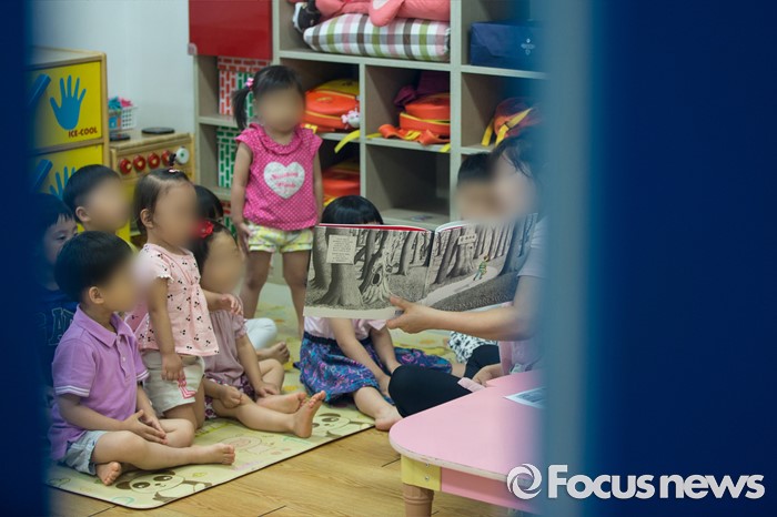 △ 맞춤형 보육 첫 날, 수업 듣는 어린이들