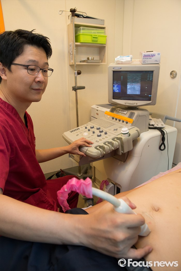 (서울=포커스뉴스) 지난 21일 오전 서울 서초구 365mc병원에서 비만클리닉 권민성 원장이 복부비만을 체크하고 있다.