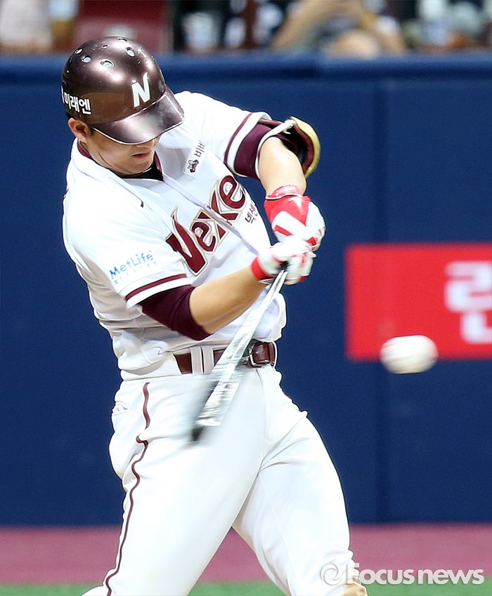 (서울=포커스뉴스) 1일 서울 고척 스카이돔에서 열린 2016 프로야구 KIA-넥센 경기 6회말 2사후 넥센 김민성이 좌월 솔로 홈런을 치고 있다.