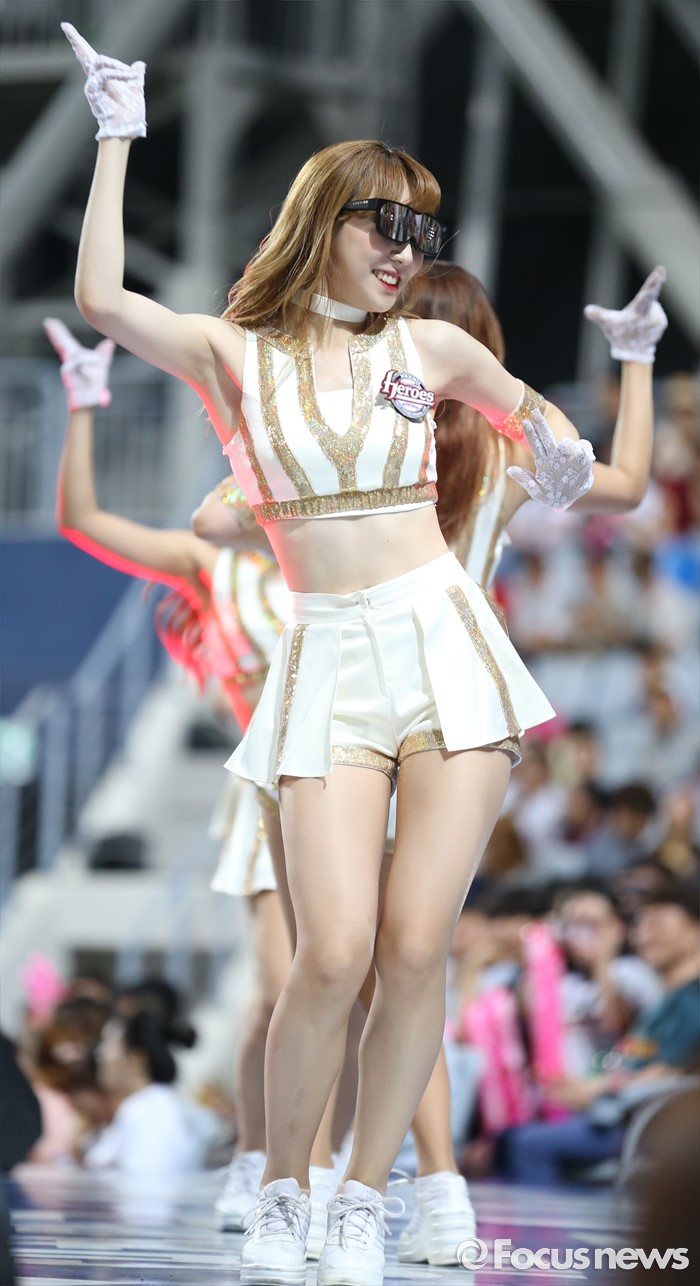 (서울=포커스뉴스) 장맛비가 본격적으로 내린 1일 유일하게 KIA-넥센 경기가 열린 서울 고척 스카이돔에서 넥센 치어리더가 클럽 분위기를 물씬 풍기며 활기찬 안무로 관중석의 열기를 북돋우고 있다.