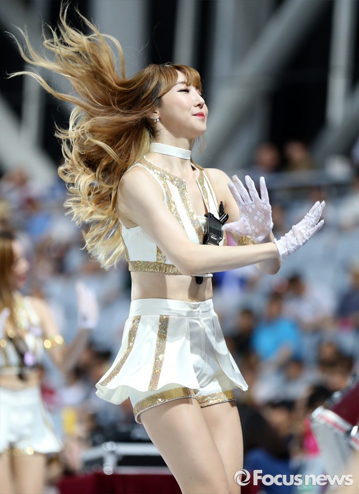 (서울=포커스뉴스) 장맛비가 본격적으로 내린 1일 유일하게 KIA-넥센 경기가 열린 서울 고척 스카이돔에서 넥센 치어리더가 클럽 분위기를 물씬 풍기며 활기찬 안무로 관중석의 열기를 북돋우고 있다.