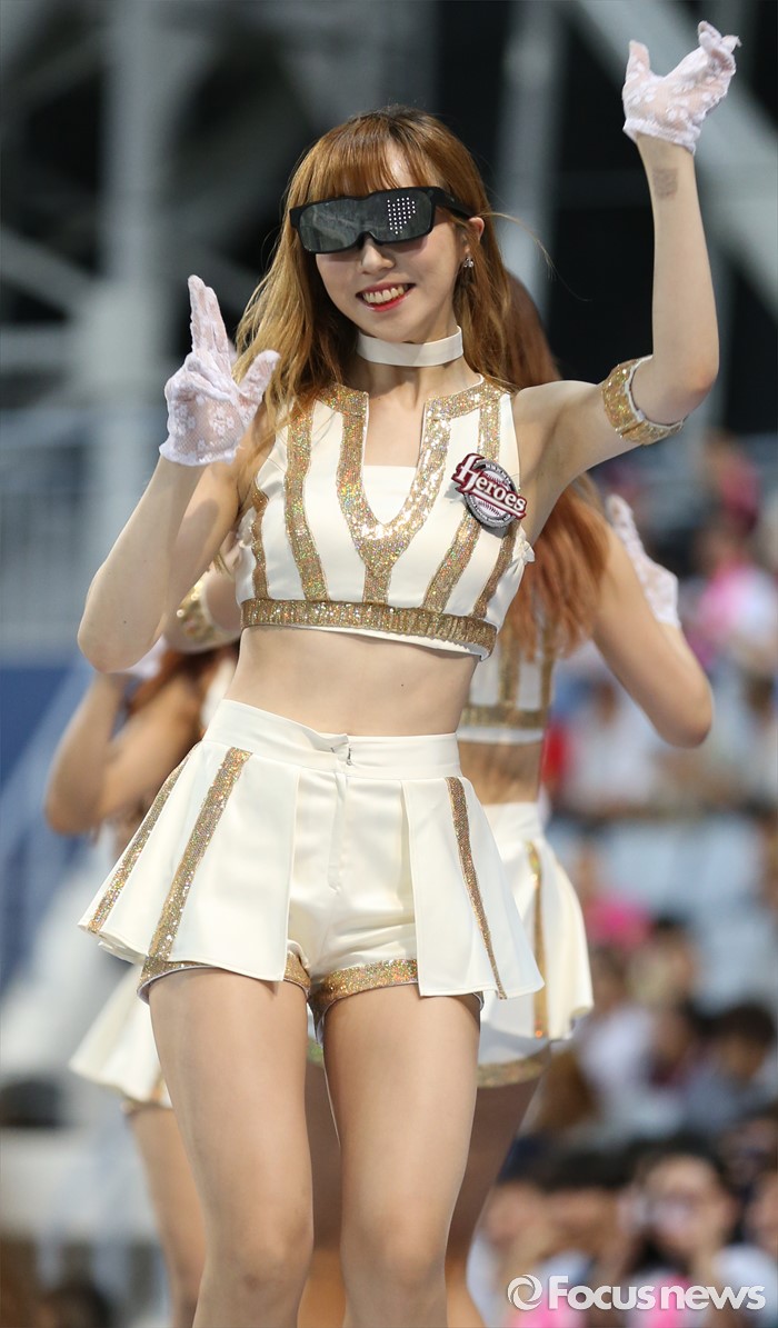 (서울=포커스뉴스) 장맛비가 본격적으로 내린 1일 유일하게 KIA-넥센 경기가 열린 서울 고척 스카이돔에서 넥센 치어리더가 클럽 분위기를 물씬 풍기며 활기찬 안무로 관중석의 열기를 북돋우고 있다.