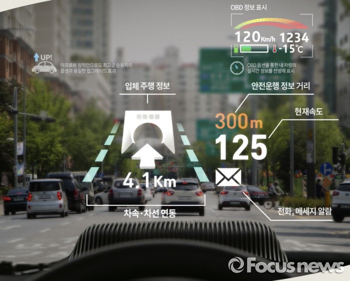 이번에 공개되는 신제품은 고급 환경, 편리성, 안전성 세 가지 콘셉트를 담았다. 순정형 제품과 동일한 허상거리 구현 방식을 적용해 완성차와 동일한 고급 운전 환경을 제공하며, 총 12개의 OBD 정보 중 4개를 선택해 표시할 수 있다. 미세화면 조정 기능과 음성 안내 시스템 기능 등도 탑재했다.
