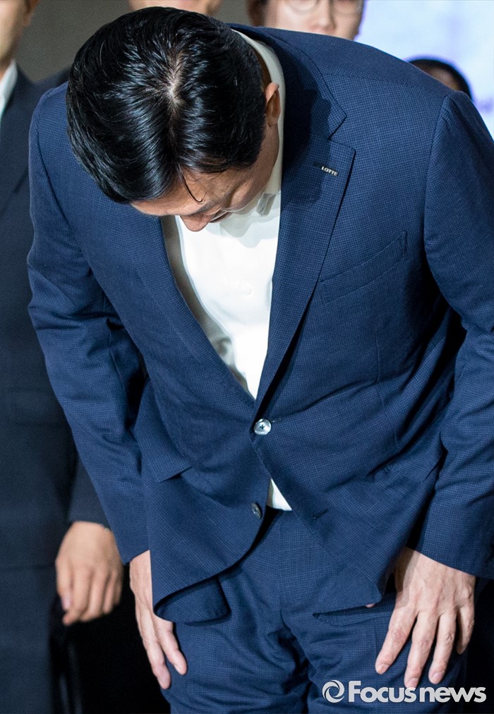 고개 숙인 신동빈 회장
