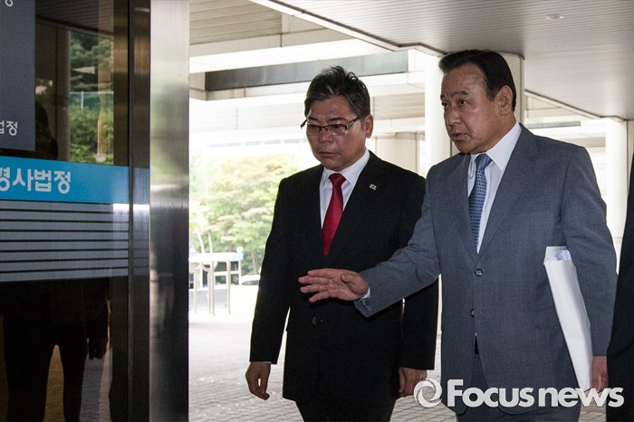(서울=포커스뉴스) 정치자금법 위반 혐의를 받고 있는 '성완종 리스트'의 이완구(오른쪽) 전국무총리가 항소심 4회 공판에 참석하기 위해 4일 오전 서울 서초구 서울고등법원으로 들어서고 있다.