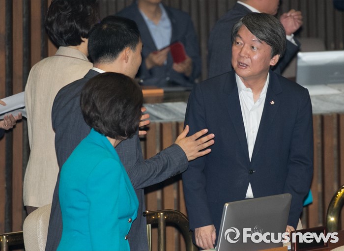 (서울=포커스뉴스) 4일 오전 서울 여의도 국회에서 열린 343회 국회(임시회) 6차 본회의, 경제에 관한 대정부 질문에 참석한 안철수 국민의당 전 대표가 의원들과 대화하고 있다.
