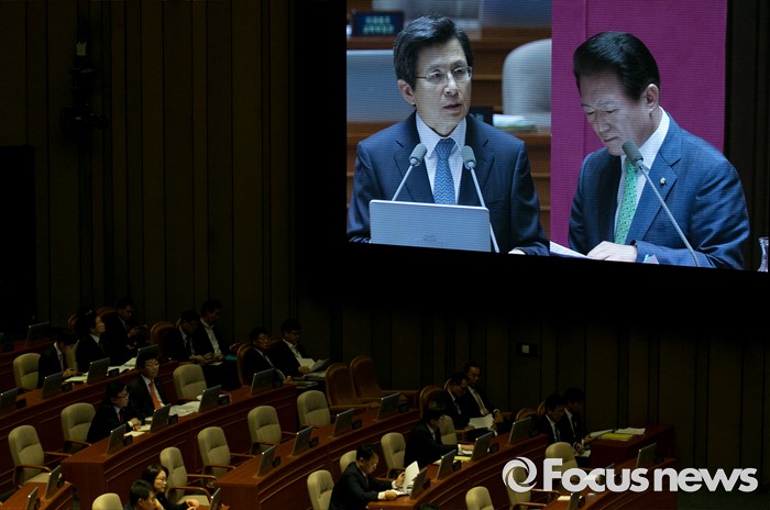 (서울=포커스뉴스) 4일 오전 서울 여의도 국회에서 열린 343회 국회(임시회) 6차 본회의, 경제에 관한 대정부 질문에 참석한 황교안 국무총리가 김한표 새누리당 의원 질문에 답하고 있다.