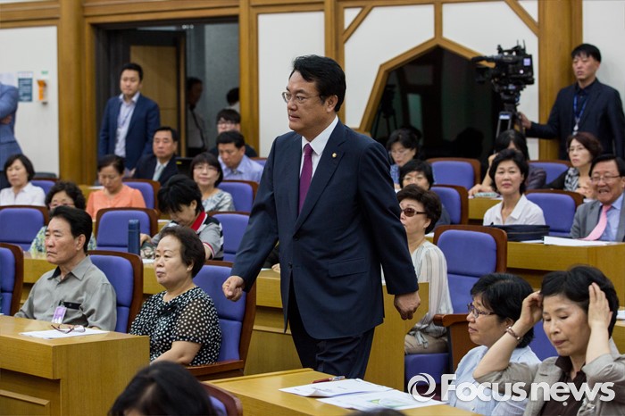 (서울=포커스뉴스) 정진석 새누리당 원내대표가 4일 오전 서울 여의도 국회의원회관에서 열린 '생명존중포럼 창립총회'에 참석하기 위해 총회장으로 들어서고 있다.
