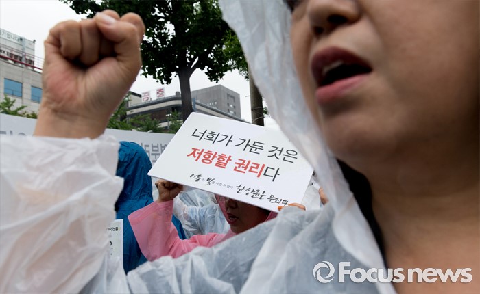 (서울=포커스뉴스) 4일 오후 서울중앙지방법원 앞에서 전국민주노동조합총연맹이 한상균 위원장 석방 판결 촉구 결의대회를 하고 있다.