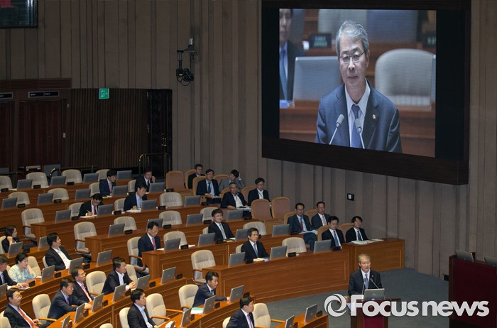 (서울=포커스뉴스) 4일 오후 서울 여의도 국회에서 열린 343회 국회(임시회) 6차 본회의, 경제에 관한 대정부 질문에 참석한 임종룡 금융위원장이 정유섭 새누리당 의원의 질문에 답하고 있다.