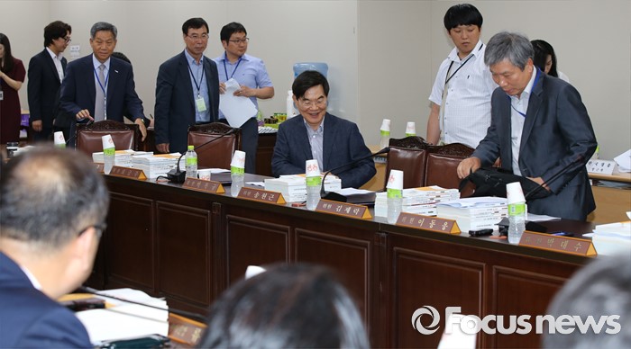 (세종=포커스뉴스) 4일 오후 세종시 정부세종청사 고용노동부 최저임금위원회 전원회의실에서 열린 제8차 전원회의에서 지각을 한 사용자 위원들이 자리로 이동하고 있다.