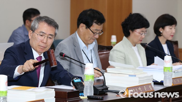 (세종=포커스뉴스) 4일 오후 세종시 정부세종청사 고용노동부 최저임금위원회 전원회의실에서 열린 제8차 전원회의에서 박준성 위원장이 회의 시작을 알리는 의사봉을 두드리고 있다.