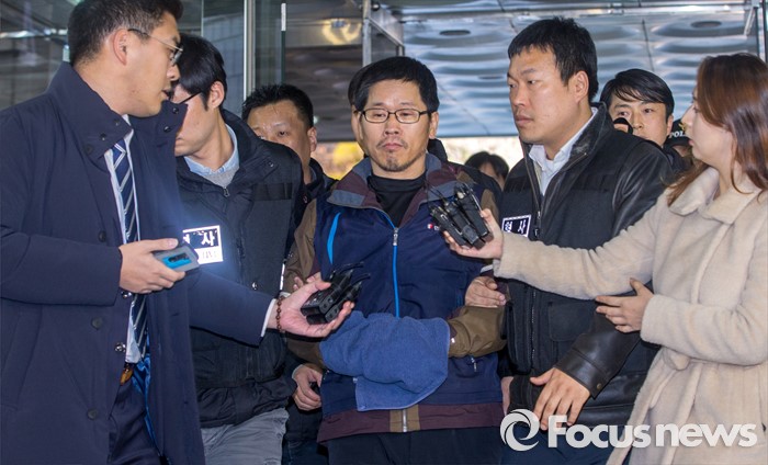 한 위원장은 지난해 4월16일부터 11월14일 1차 민중총궐기 대회까지 11차례 집회에서 특수공무집행방해치상 1회, 특수공무집행방해 3회, 특수공용물건손상 2회, 일반교통방해 7회, 주최자준수사항 위반 4회, 해산명령불응 5회, 금지장소집회참가 4회 등을 저지른 혐의로 기소됐다.(서울=포커스뉴스) 한상균 민주노총 위원장이 영장실질심사를 받기 위해 12일 오후 서울 서초구 서울중앙지방법원으로 들어서고 있다. 2015.12.12 강진형 기자