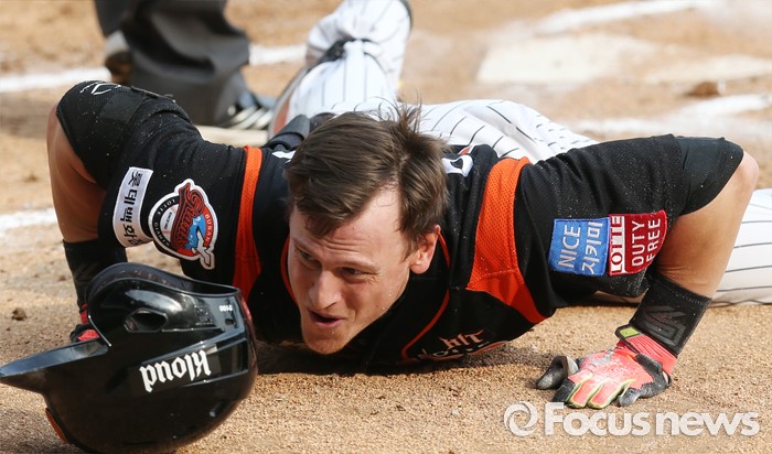 아두치는 지난달 21일 실시된 한국도핑방지위원회(KADA) 주관 도핑검사 결과 체내에서 금지약물인 옥시코돈 성분이 검출됐다. 롯데는 아두치가 36경기 출장정지 징계 통보를 받은 뒤 KBO에 웨이버 공시 신청했다.(서울=포커스뉴스) 12일 서울 잠실구장에서 열린 2016 프로야구 롯데-두산 경기 3회초 롯데 선두타자 아두치가 중견수를 넘기는 3루타와 송구 실책을 틈타 홈까지 달려 슬라이딩하며 세이프되고 있다. 2016.06.12 우정식 기자