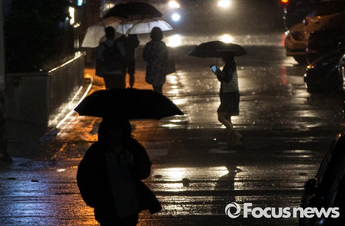 (서울=포커스뉴스) 서울을 비롯한 전국 대부분에 호우주의보ㆍ경보가 발령된 4일 오후 서울 서초역 인근에서 우산을 쓴 시민들이 발걸음을 재촉하고 있다. 기상청은 북상하는 장마전선에 내일 전국에 비가 계속되는 가운데 특히 중부지방에는 국지성 호우가 올 것으로 예상했다.