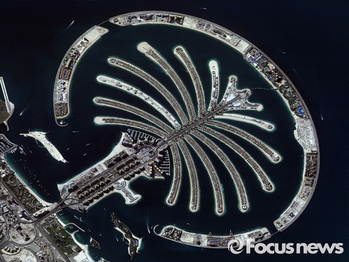 (서울=포커스뉴스) 아리랑 3A호가 촬영한 UAE 두바이 팜 주메이라. 지난해 2015년 3월 26일 발사된 다목적실용위성 아리랑 3A호는 55cm급의 고해상도 전자광학카메라와 국내 최초의 적외선 센서가 탑재된 지구관측위성이다.