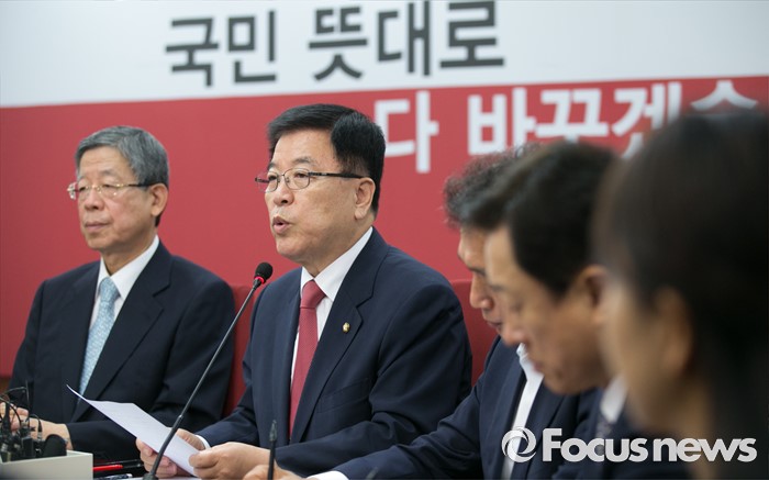 (서울=포커스뉴스) 장마전선의 영향으로 수도권 지역에 폭우가 쏟아지고 있는 가운데 김광림 새누리당 정책위의장이 5일 오전 국회에서 열린 원내대책회의에서 "기후변화에 대해 장기적으로 면밀한 대비책이 마련돼야 한다"고 주장했다.