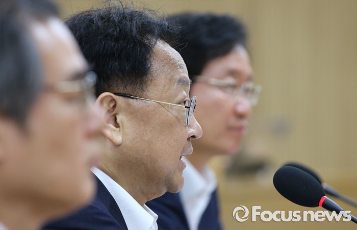 (세종=포커스뉴스) 유일호(가운데) 경제부총리 겸 기획재정부장관이 5일 오전 서울-세종 영상회의로 열린 경제관계장관회의에 참석해 회의를 주재하고 있다.