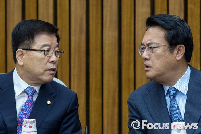 | △ 대화하는 정진석 원내대표-김광림 정책위의장 |