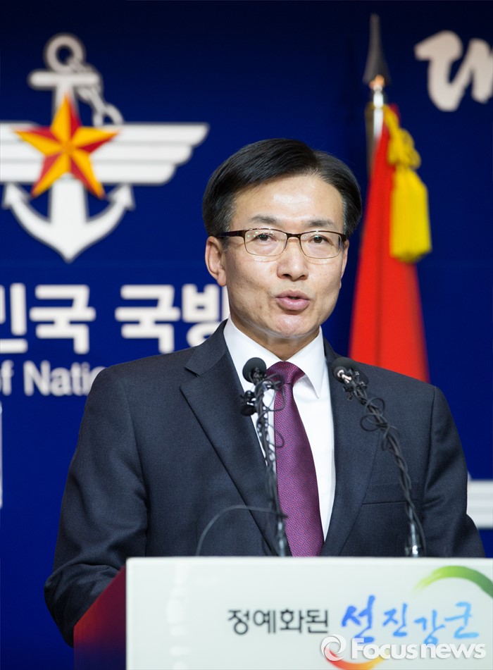 문 대변인은 3~4개월간 진행된 한미 공동실무단의 협의 내용에 관한 취재진의 설명 요청에 "중간 진행상황을 설명하는 자리를 건의해보겠다"고 답했다.(서울=포커스뉴스) 7일 오전 서울 용산구 국방부에서 문상균 대변인이 이날 북한 장거리 로켓 발사 관련 브리핑을 하고 있다. 2016.02.07 오장환 기자