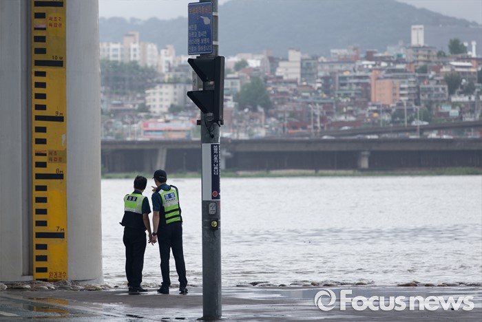 잠수교 수위 살펴보는 경찰들