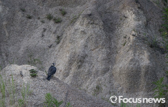 (인천=포커스뉴스) 송골매 유조가 인천시 수도권 매립지들녘의 언덕에서 휴식을 취하고 있다.